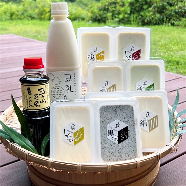 セット内容 ・充填豆腐4種 各370g 賞味期限:発送日から最低でも1週間 ・豆乳 500ml×1本 賞味期限:発送日から約2週間 ・五ケ山豆腐のたれ 300ml