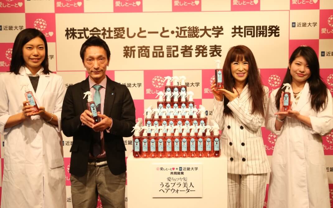 コラーゲンの会社愛しとーとの「女性に、より美しくなっていただきたい」という想いから、近畿大学との産学連携が実現。近畿大学が完全養殖に成功したブリから抽出されたコラーゲンを使った世界初のヘアウォーターの開発に成功し、注目をあびました。