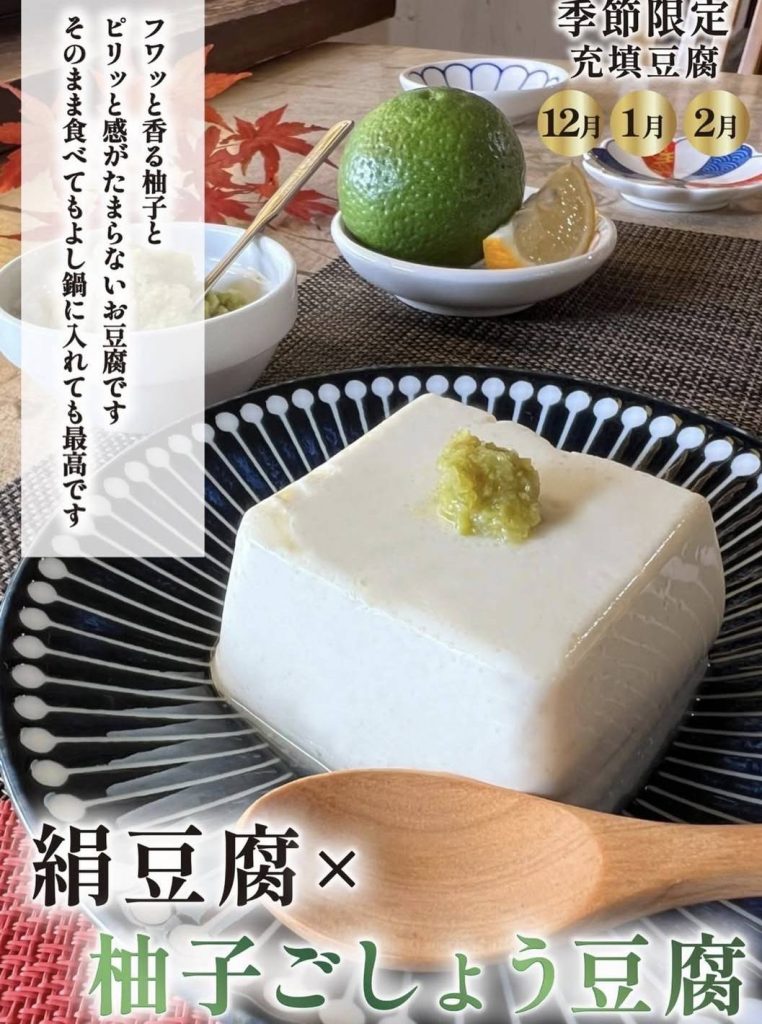 なめらかな絹豆腐に、風味豊かな柚子ごしょうを練り込み、