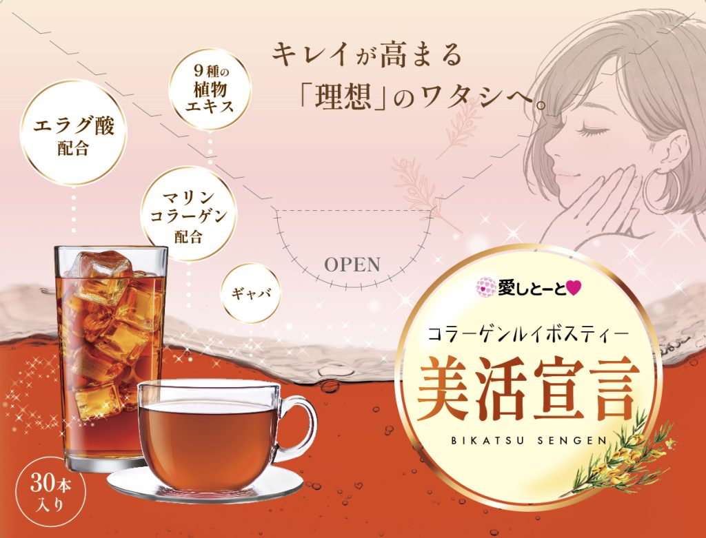 【新登場】飲む美容習慣✨「エラグ酸×コラーゲン」の贅沢ルイボスティー『美活宣言』!