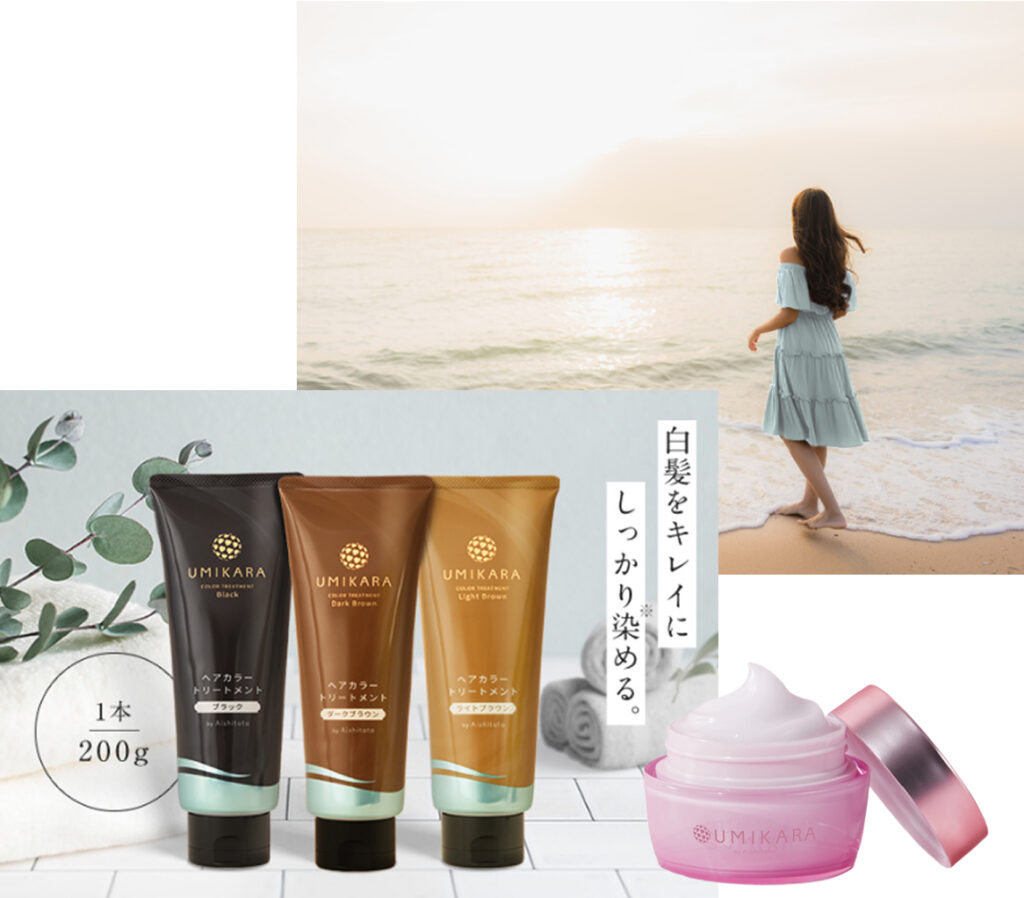 肌は一生ものだからこそ、未来を見据え、負担の少ないお手入れが必要です。何を選ぶかで肌の未来は変わるため、UMIKARAは自然の力を味方につけ、肌にも地球にも優しい素材を厳選しています。忙しい毎日を頑張る女性たちが、鏡を見て笑顔になれるよう、優しさで包み込む製品です。美しさがもたらす自信は、大切な人との時間をより輝かせます。UMIKARAは、光り輝く海のように、あなたに笑顔を届けます。
