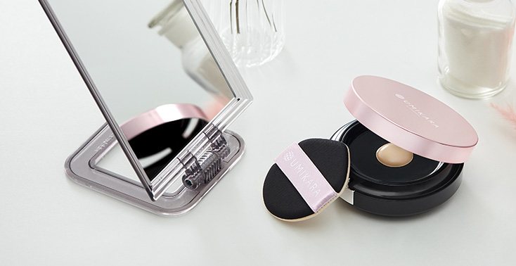 たとえばエアレスコンパクトミネラルファンデーションは、「肌にも海にも優しい」化粧品を目指し、数千もの成分からサンゴ末や海藻エキス、マリンコラーゲンといった希少な自然由来成分を厳選しました。自然由来成分だけで保湿とメイクアップを両立させるのは困難でしたが、海の力を信じ、ストイックにこだわりを追求し、その結果、「人にも海にも優しい自然のサイクルに似た循環」を生む、UMIKARAの“サスティナブル“な化粧品が誕生しました。